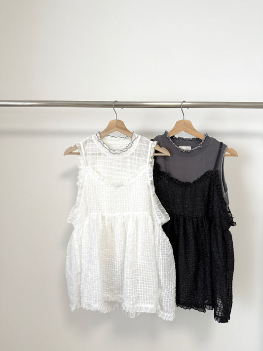 2WAY RUFFLE格紋綁帶背心 | E21902