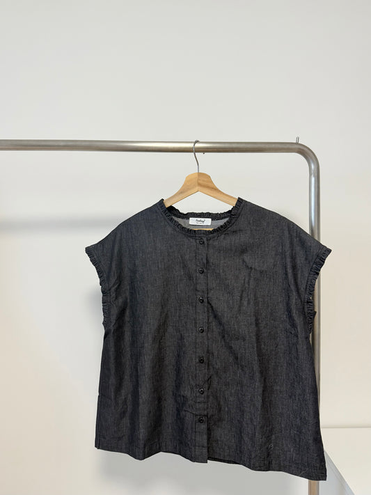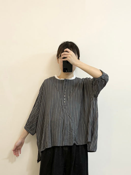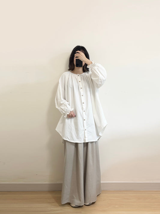 束袖木扣長襯衫 | E21384 [ 黑色!]