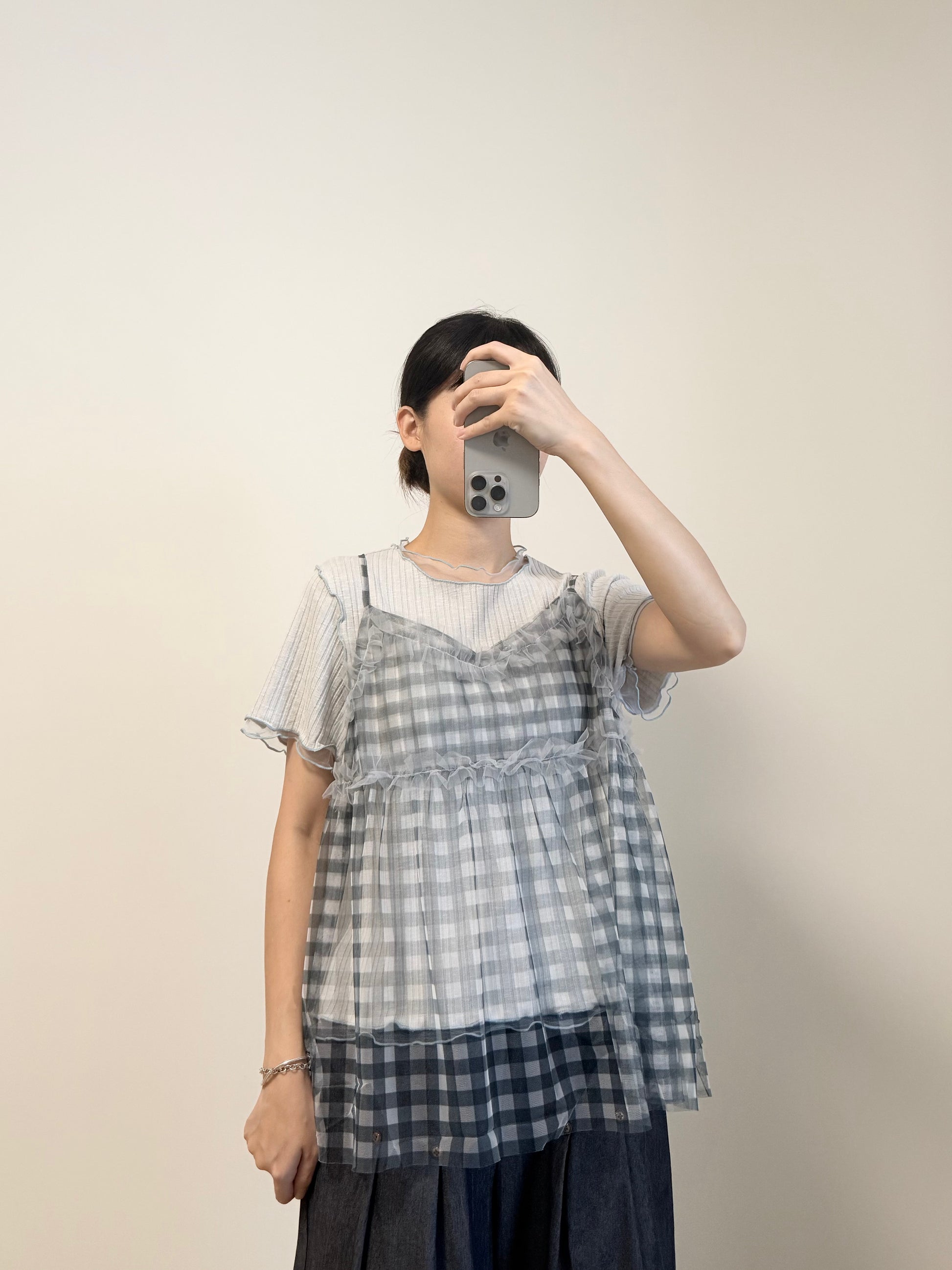 直紋車線拼紗TOP | E21798