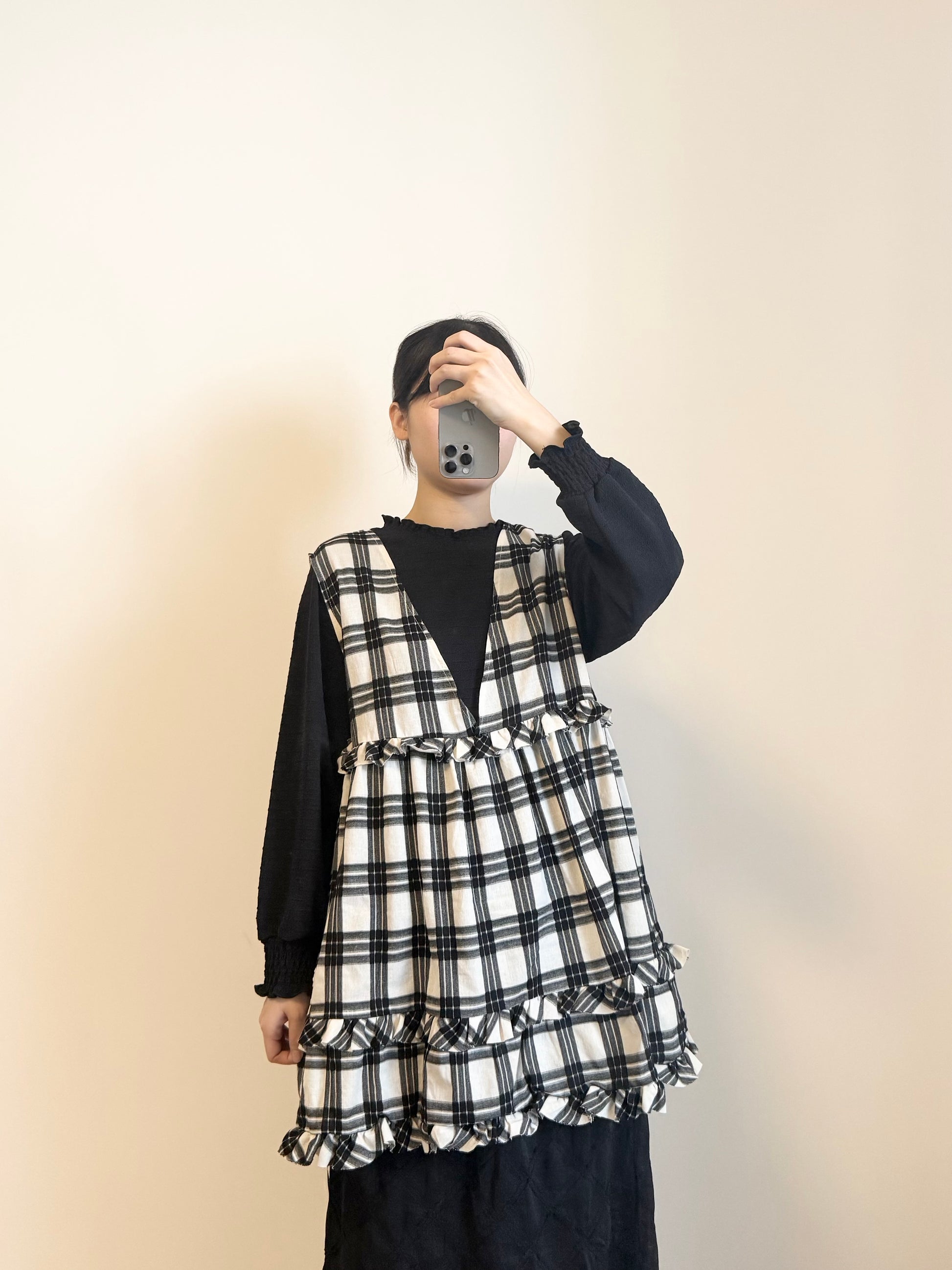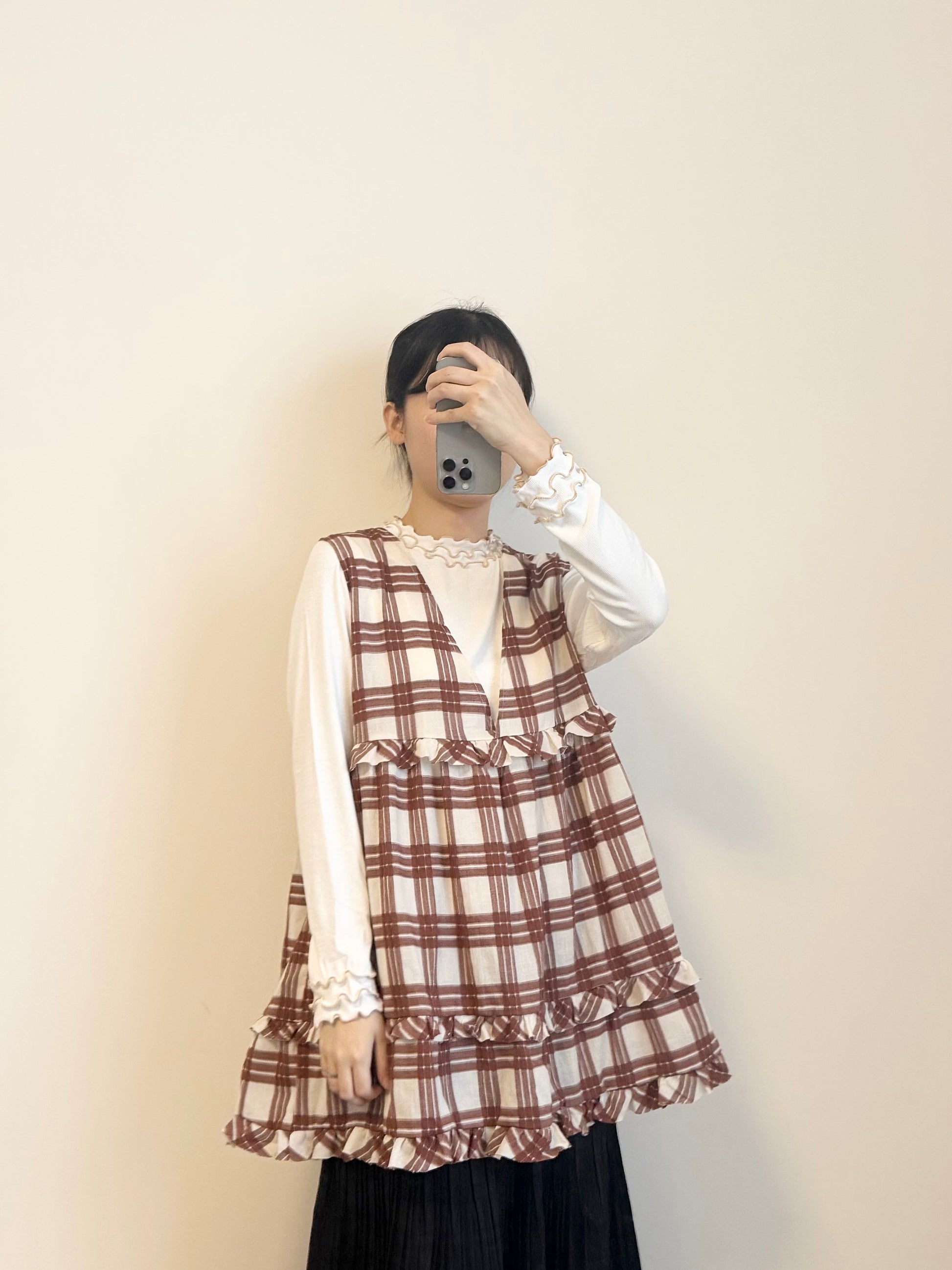 2WAY RUFFLE格紋綁帶背心 | E21902